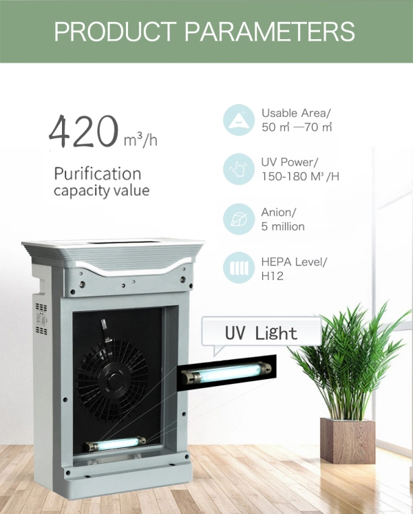 Các giai đoạn lọc: Bộ lọc trước PP + HEPA + Bộ lọc carbon + Quang xúc tác + Đèn UV + Chất xúc tác lạnh + Anion
